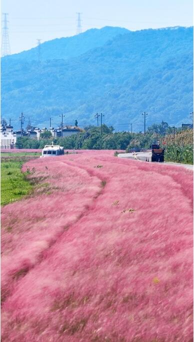 近日,梅山湾畔的粉黛花海正悄然铺展,其最佳观赏期通常为10月中旬至11月中旬。