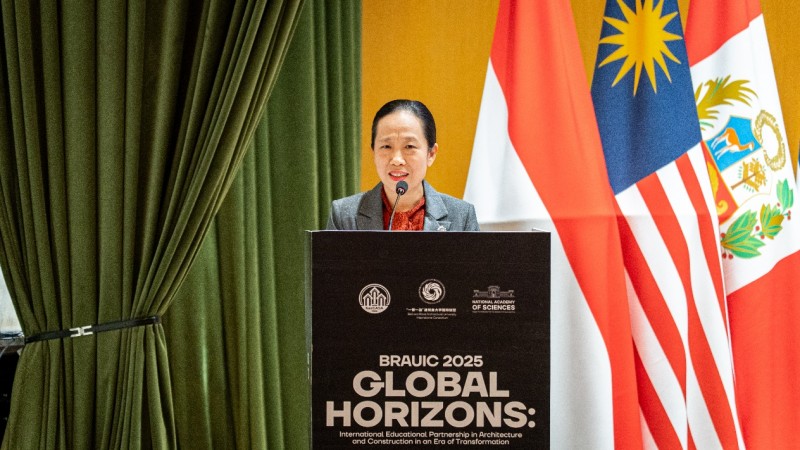 中国驻阿拉木图总领事蒋薇女士在致辞中指出,在习近平总书记提出的“一带一路”倡议引领下,中哈两国人文交流与合作日益深化,高等教育与科研合作在其中发挥着桥梁纽带作用。她特别肯定本次会议期间取得的务实成果,包括北京建筑大学、哈萨克斯坦国际教育集团与哈萨克斯坦国家科学院三方合作备忘录的签署,以及“全球建筑遗产数字保护与创新应用平台”的启动。她表示,这些举措将为知识共享、科研协同与文化遗产保护注入新动能。她高度评价北京建筑大学鲁班书院海外分院在阿拉木图揭牌成立的重要意义,强调鲁班所代表的工匠精神与创新智慧将为中亚地区人才培养与技术交流提供新平台。她表示,总领馆将继续支持中哈两国在教育、科技与文化领域的合作项目,推动共建“一带一路”高质量发展,为两国人民带来更多实实在在的成果。