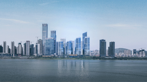 项目位于滨江新城核心位置, 银杉路与长望路交汇处东北角。
