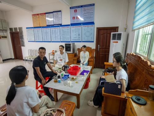 “历久猕新”突击队在抵达云峰村后,首先与云峰村叶根伟主任在村党群服务中心开展访谈,了解目前猕猴桃产业发展情况。叶主任向团队详细介绍了云峰村的基本情况及猕猴桃产业的发展现状,并讲解了猕猴桃种植历史、品种分类及市场情况,向突击队解答了关于猕猴桃销售渠道、价格波动、政府监管与支持、物流成本等方面的问题。