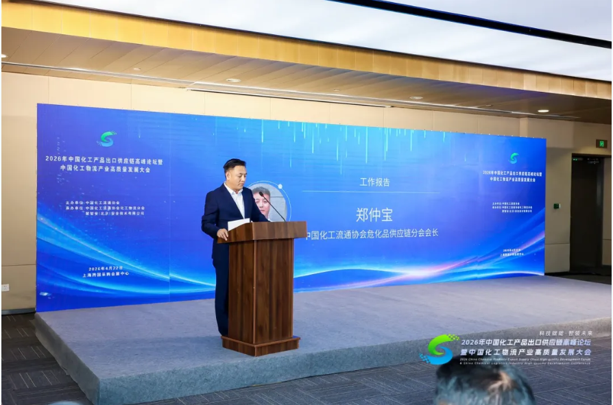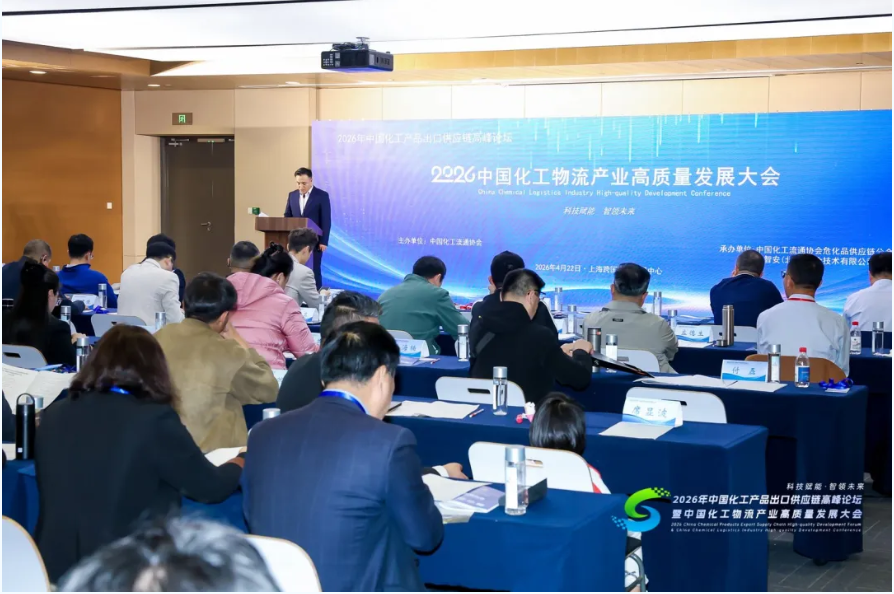 2026年4月22日,由中国化工流通协会主办、聚智安(北京)安全技术有限公司承办的2026中国化工产品出口供应链高峰论坛暨中国化工物流产业高质量发展大会在上海跨国采购会展中心举行。本次大会正值“十五五”规划开局之际,以“科技赋能·智领未来”为主题。中国化工流通协会副会长邱云鸣、秘书长李兵,国家能源局专家库成员赵军,中国商务部研究院特聘专家符振东,密尔克卫化工供应链服务股份有限公司副总裁石旭,交通运输部危险货物运输研究团队带头人范文姬,上海屹脉信息科技有限公司总经理张岩,镇海石化物流有限责任公司总经理胡信红,原应急管理部化学品登记中心调研员李运才,上海汇智达国际物流有限公司副总经理李长征,廊坊市鑫达顺石油化工有限公司副总经理刘卫广,天津振越运输有限公司总经理韩振,嘉顺达化工物流有限公司董事长赵金凝,云梦泽(北京)电子商务有限公司常务副总经理王海峰,以及来自政府部门、行业协会、化工企业、物流服务商、科研院所的二百余位行业代表出席会议。