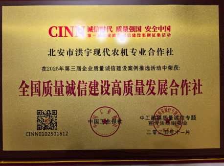 “土地是不会骗人的,你付出多少,她便回报多少”。经过几年的刻苦钻研和辛勤耕耘,张洪宇和合作社都收获了不错的成绩。2022年,北安市洪宇现代农机专业合作社被评为省级农民合作社示范社;2024年,入选北安市洪宇区域农机社会化服务中心;2025年,入选全国高质量发展合作社。此外,张洪宇还参加了黑龙江省高素质农民培训,持续提升发展能力。合作社理事长张洪宇先后被北安团市委评为“村村都有好青年”典型代表,并作为北安市农民企业家代表,参加“学先进、找差距、谋良策、促振兴”专题培训班,赴山东潍坊考察学习,已成为当地现代农业发展的模范先锋。2025年作为黑龙江省乡村产业振兴头雁学员代表及班长参加省内外实地考察学习。这些荣誉背后,是合作社将自身成长融入区域农业发展大局、积极发挥示范辐射作用的生动实践。张洪宇常说:“一人富不算富,大家富才是真的富。合作社的荣誉,正是对其带动一方、造福乡梓的社会贡献的最好认可。